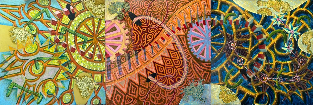 Early Morning Triptych, 120″x48″, Acrylic on Panel, 2024